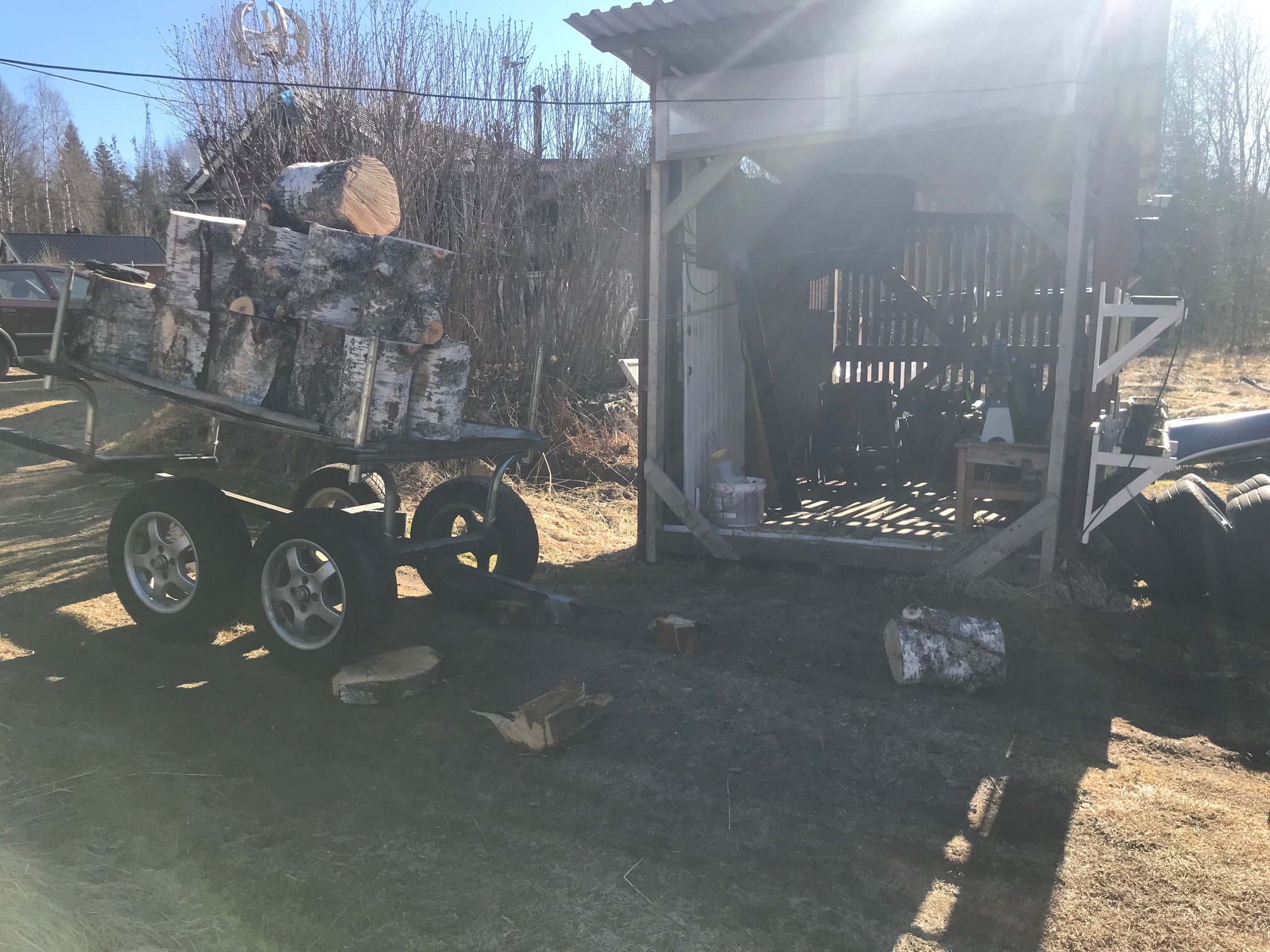 Gick ut för att lasta av vagnen till vedboden vid 11:00, efter det så tog jag